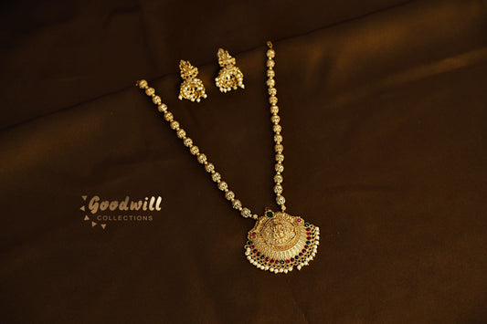 WIDTH: 2.3 INCH WEIGHT: 68 g GOLDEN BEAD LONG CHAIN WITH GODDESS LAKSHMI,MULTICOLOR STONES AND...