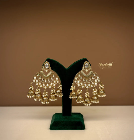 LENGTH: 3.6 INCH WEIGHT: 54 g ELEGANTLY CRAFTED WITH PEARLS AND INTRICATE DETAILING, THESE EARRINGS...