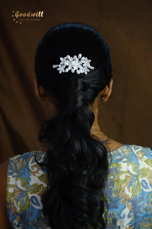 WIDTH: 1 INCH WEIGHT: 4 g ARTIFICIAL JASMINE FLOWER BUN ADORNED WITH STONES, ADDS A...