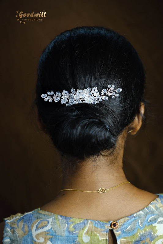 LENGTH: 3.7INCH WEIGHT: 11.5 g THIS ELEGANT HAIR ACCESSORY FEATURES A COMBINATION OF WHITE CRYSTAL...