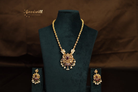 WIDTH: 2.5 INCH WEIGHT: 101.5 TRADITIONAL LONG CHAIN WITH A GOPI PENDANT FEATURING MULTICOLOR STONES...