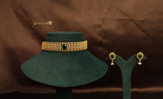 CHOKER SET FEATURING TRADITIONAL PATTERN WITH A STONE.
