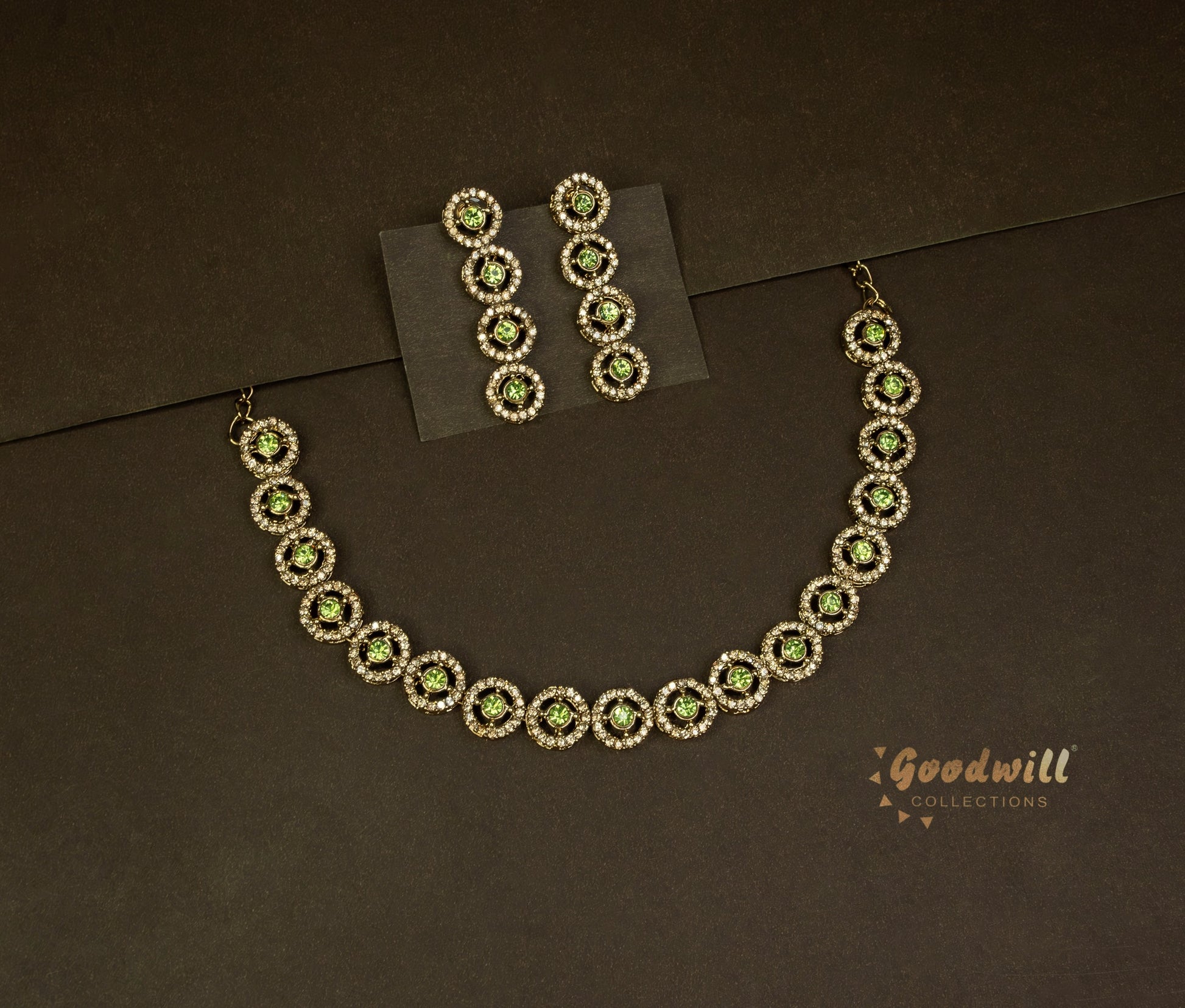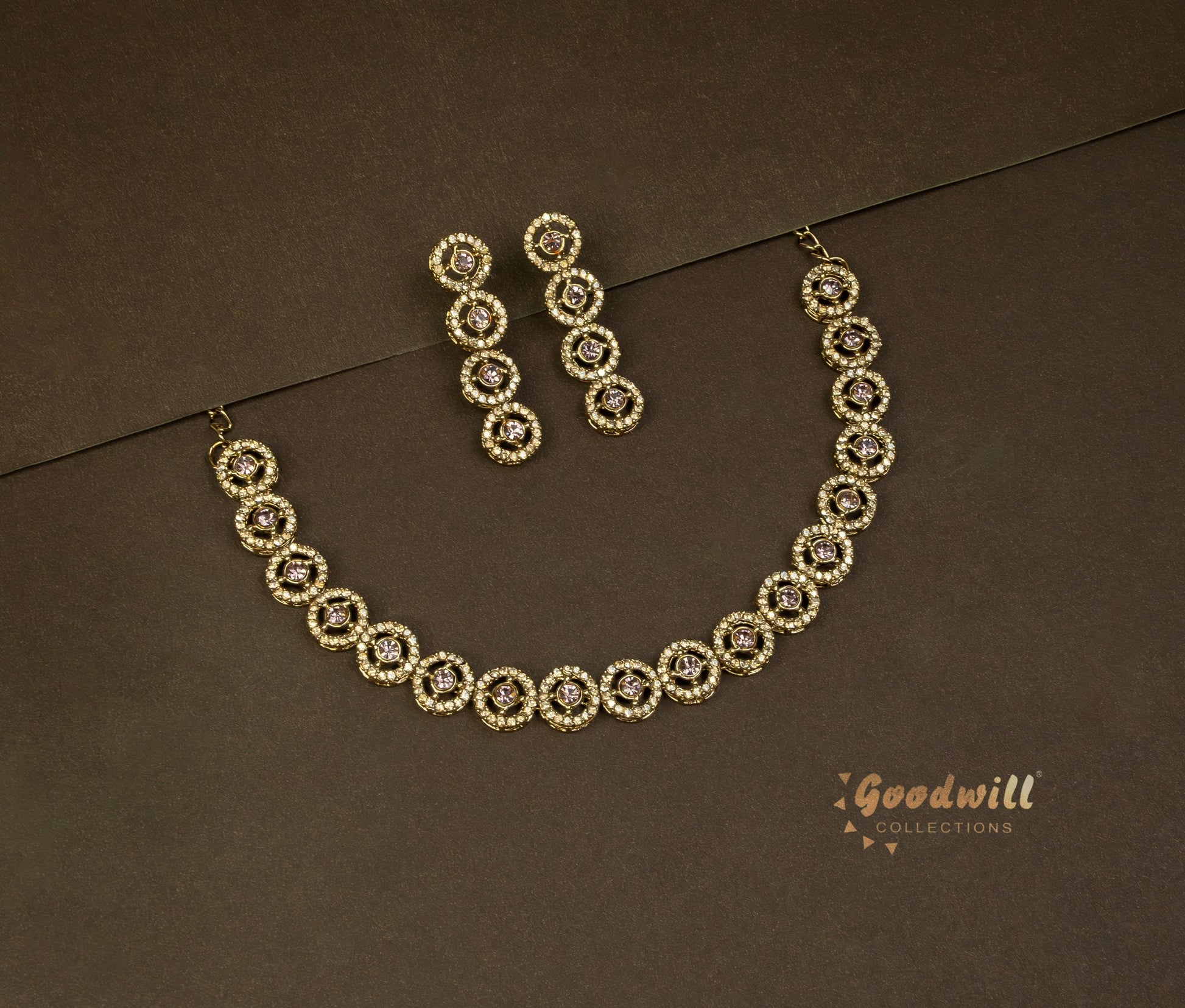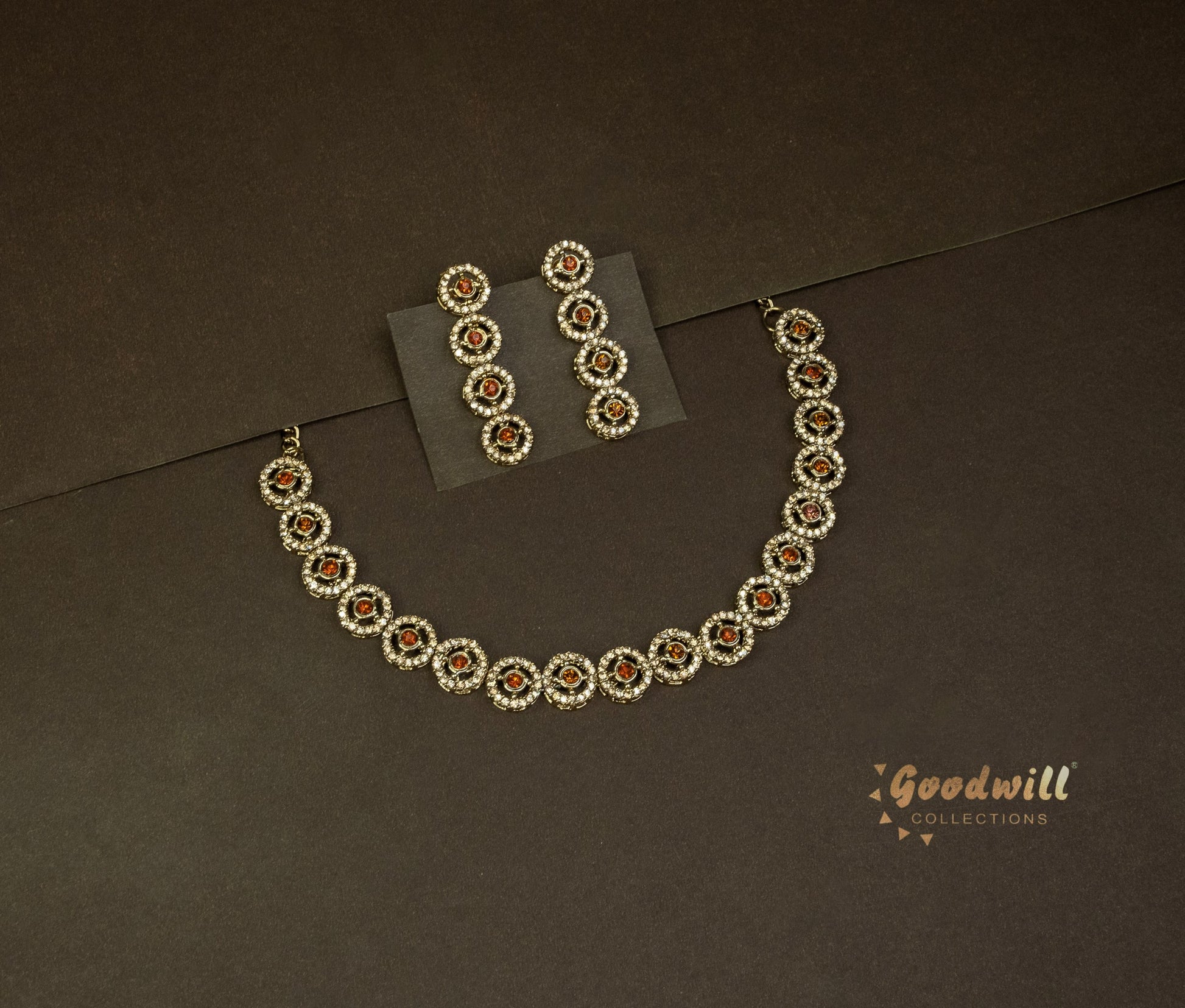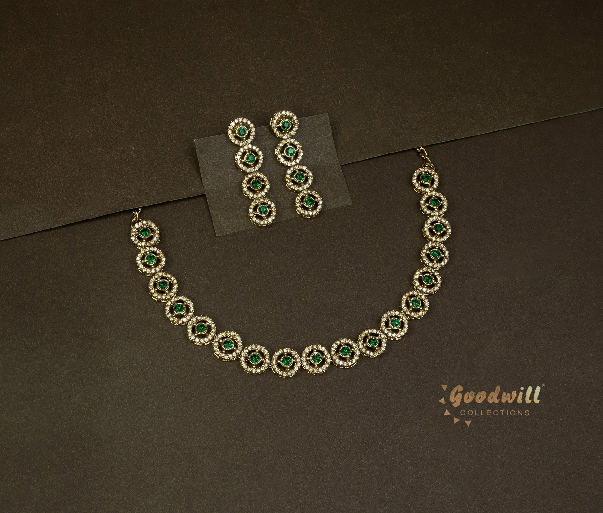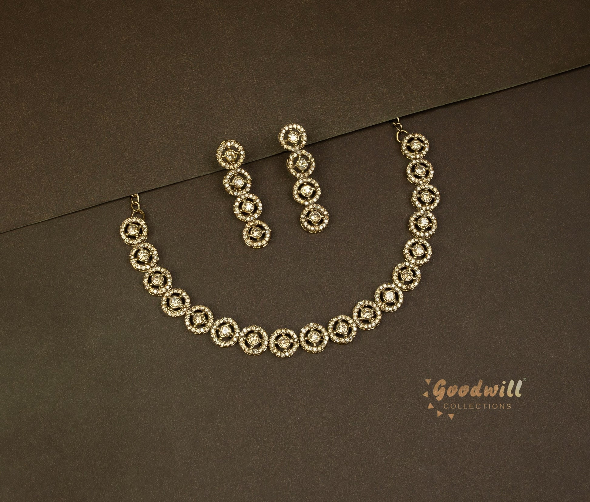 GOLD SINGLE LAYER STONE NECKLACE SET