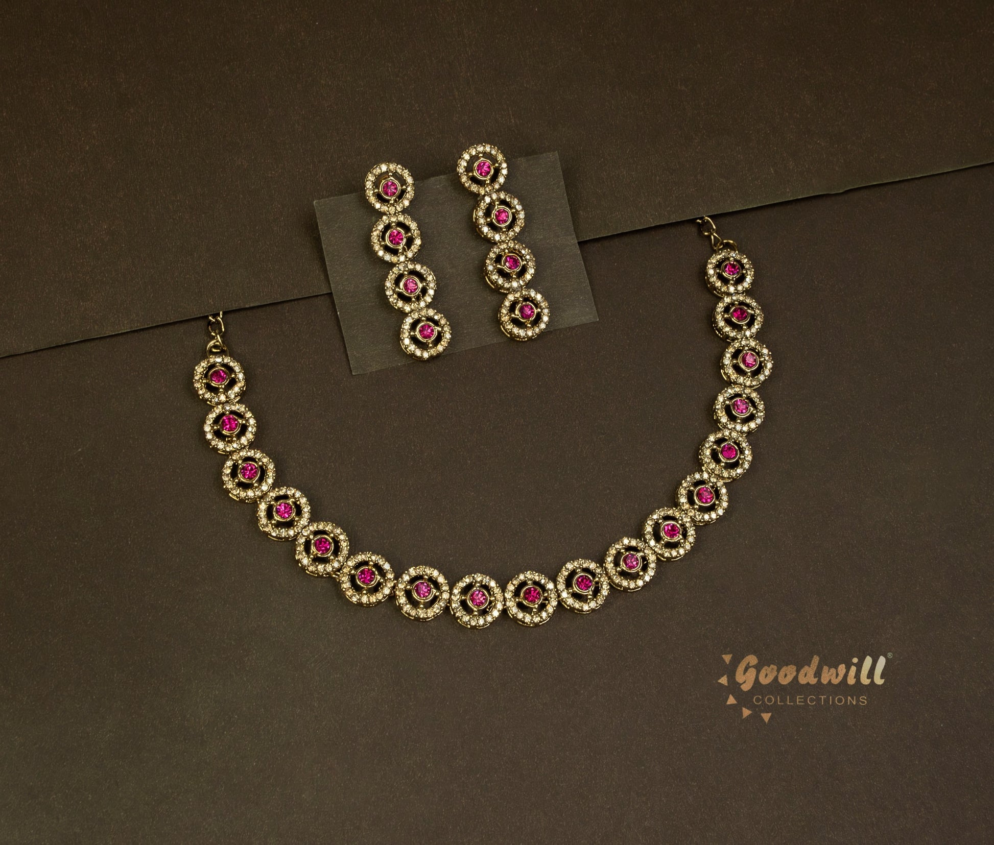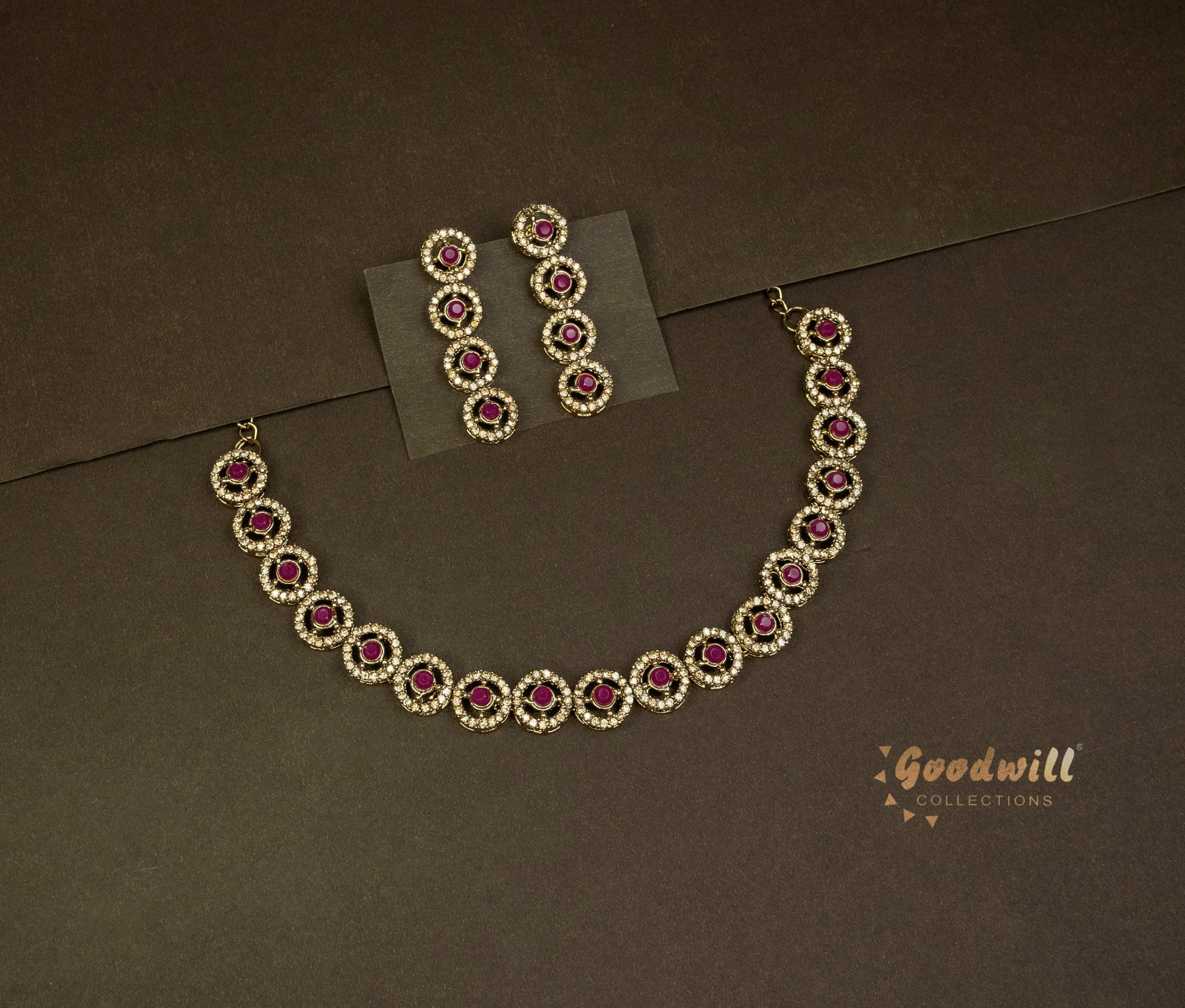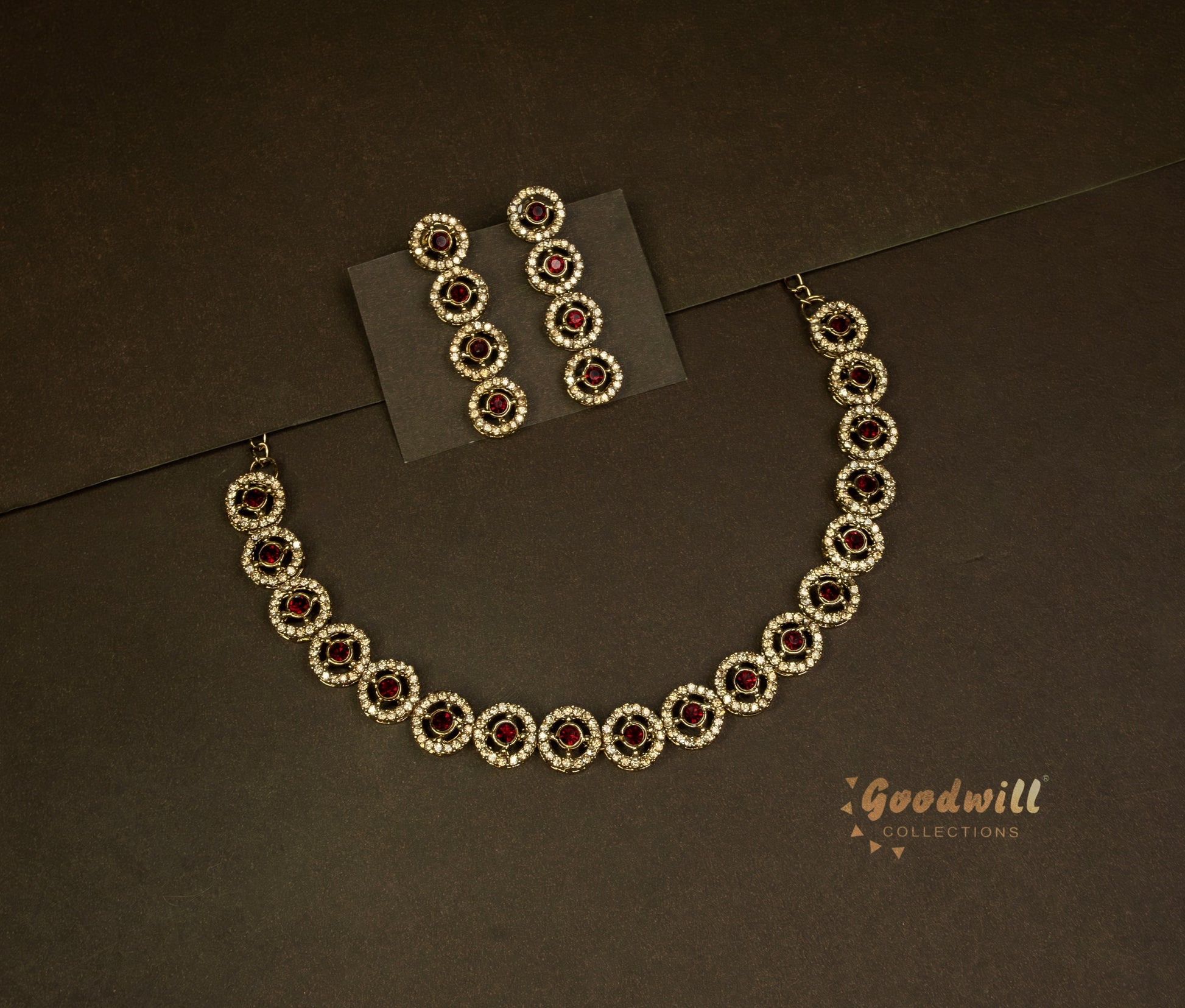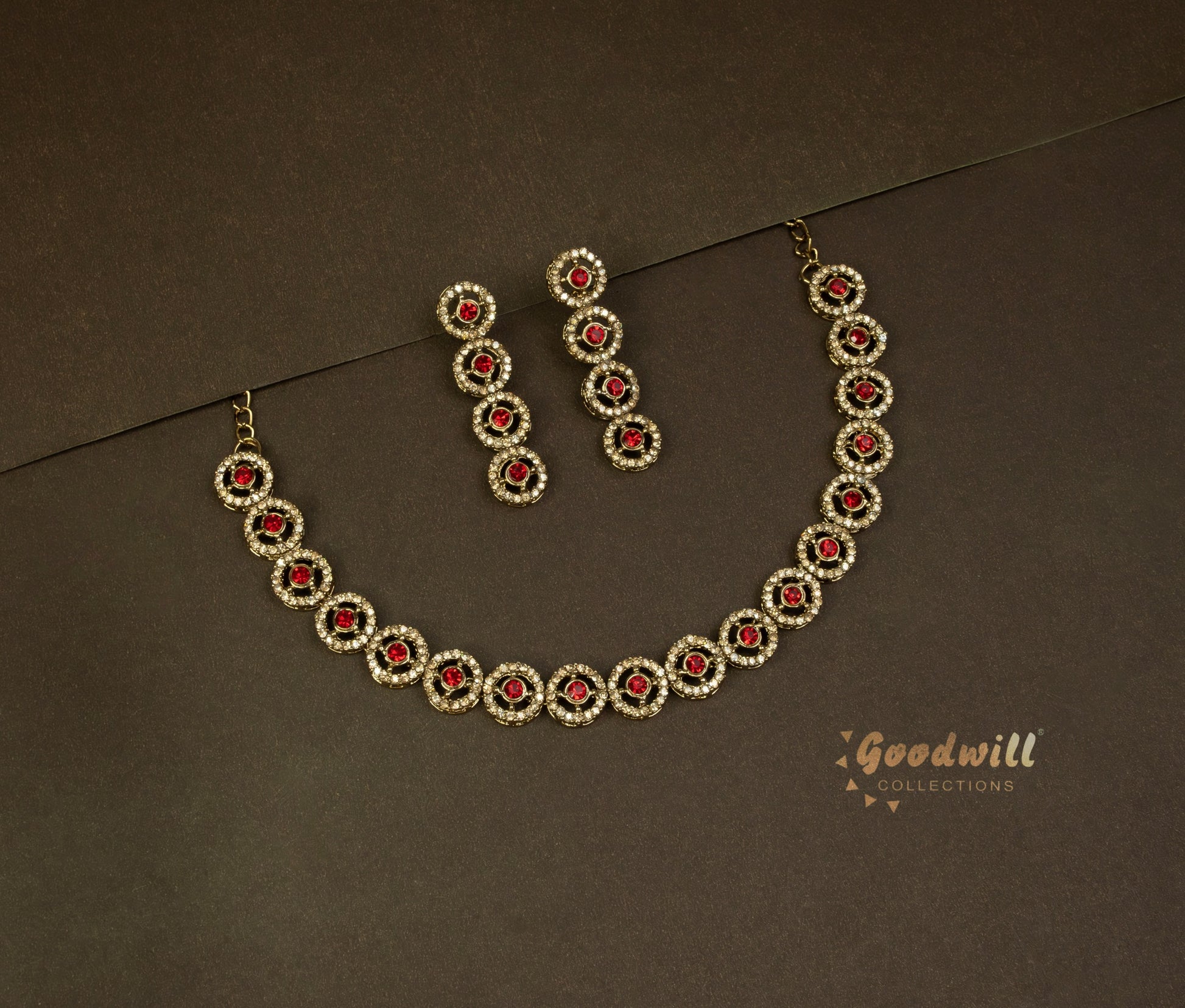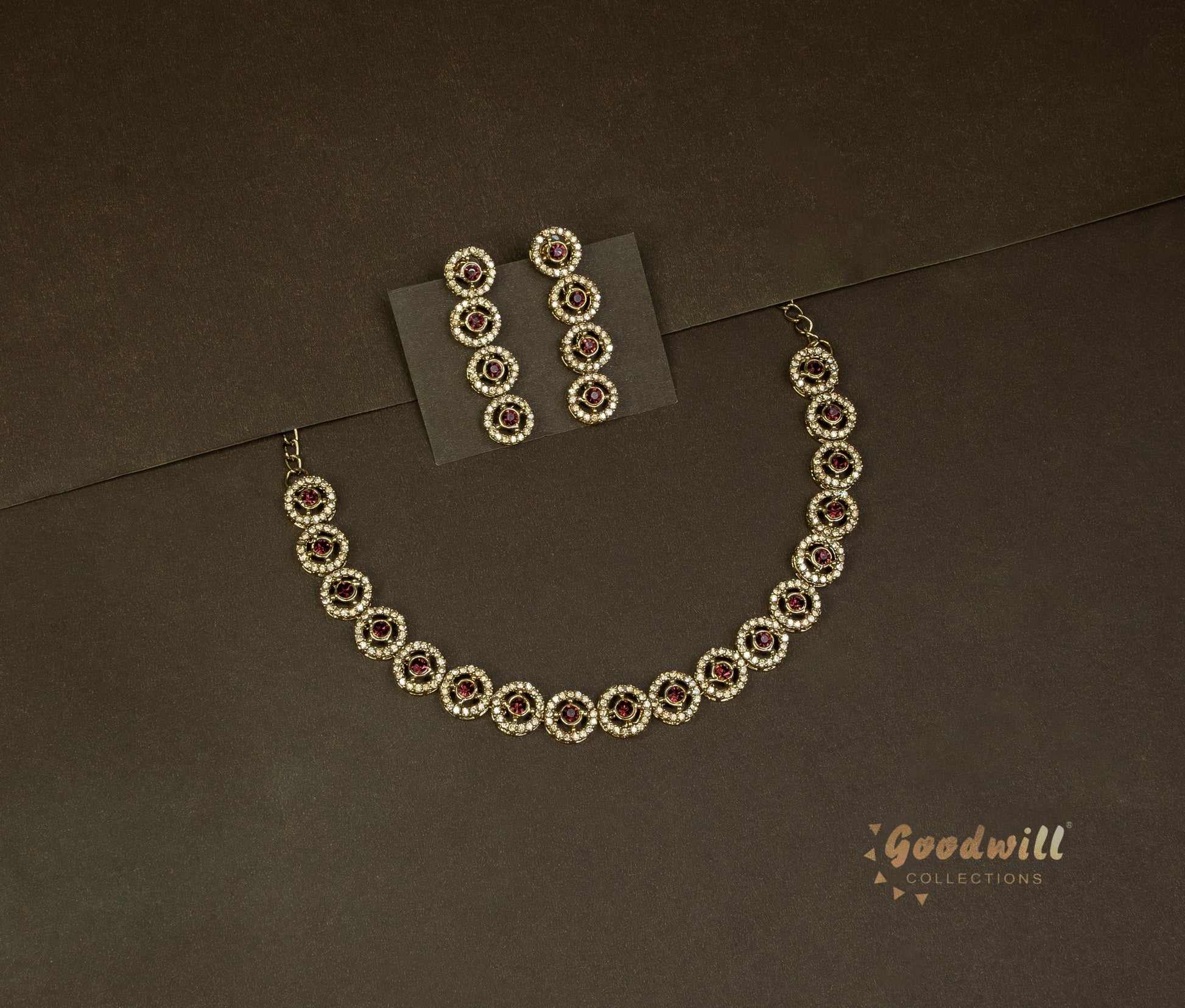 GOLD SINGLE LAYER STONE NECKLACE SET