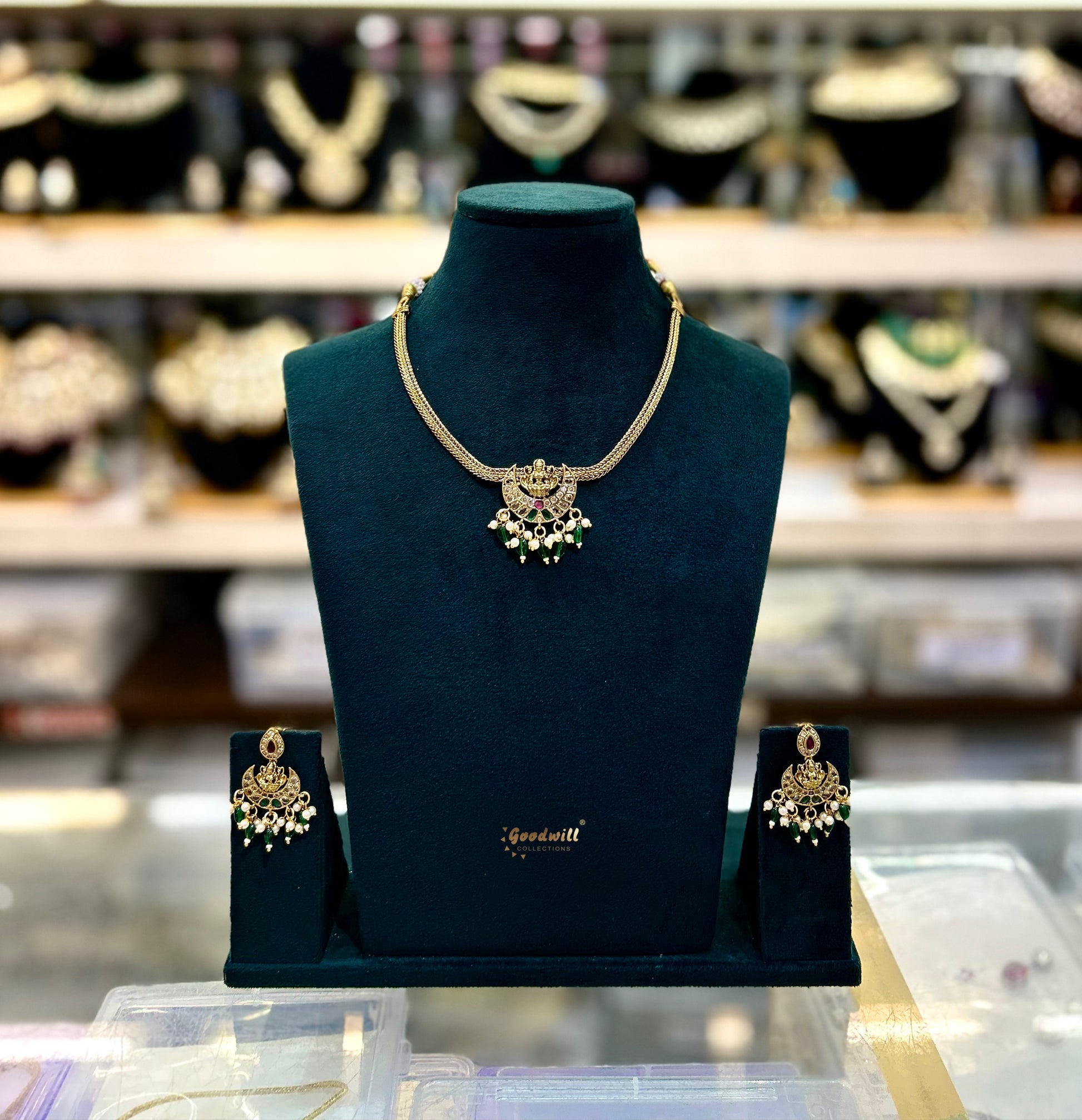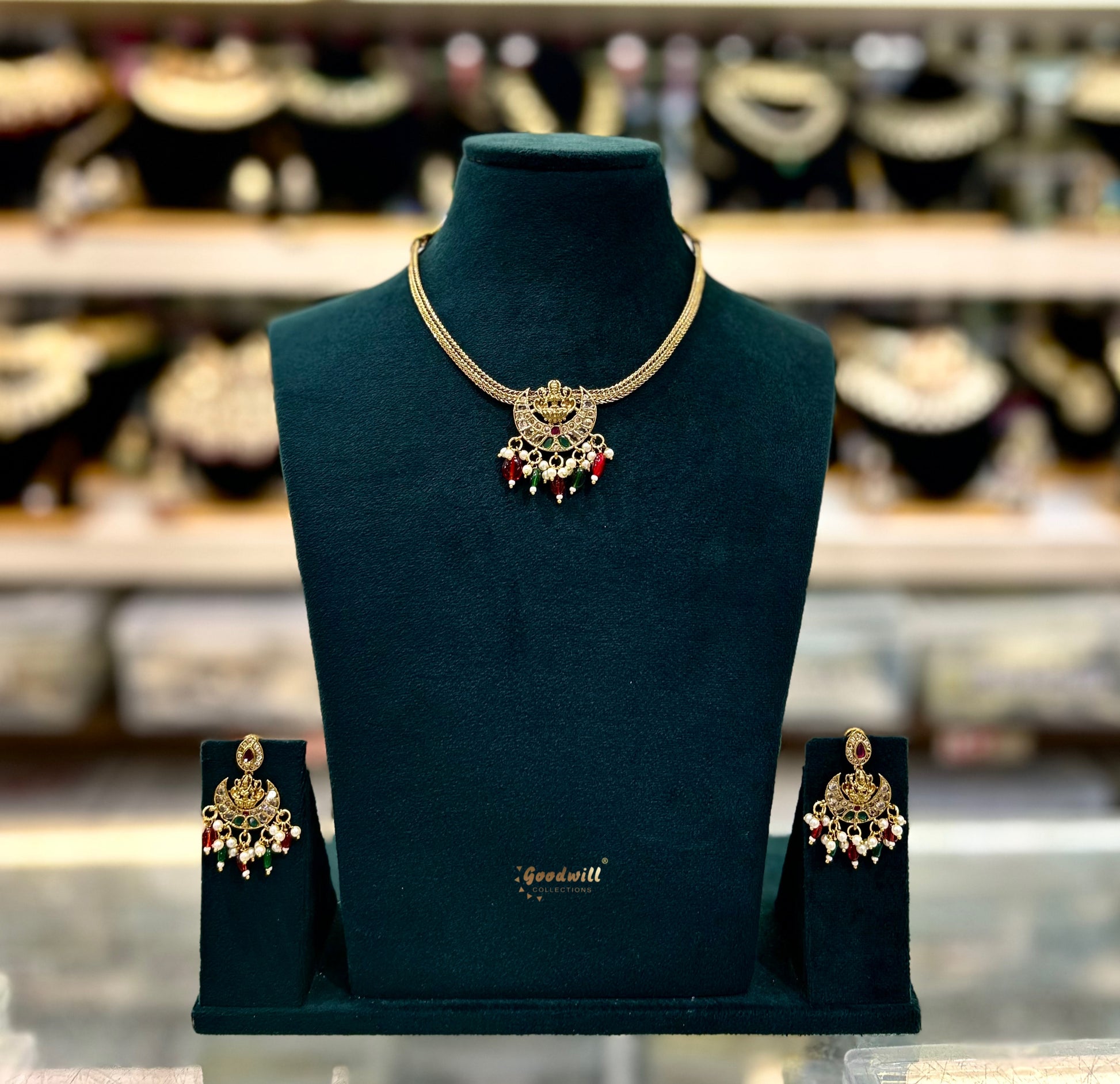 - A BEAUTIFUL PENDANT SET DESIGNED WITH MOON SHAPED PENDANT WITH STONES AND BEADS.