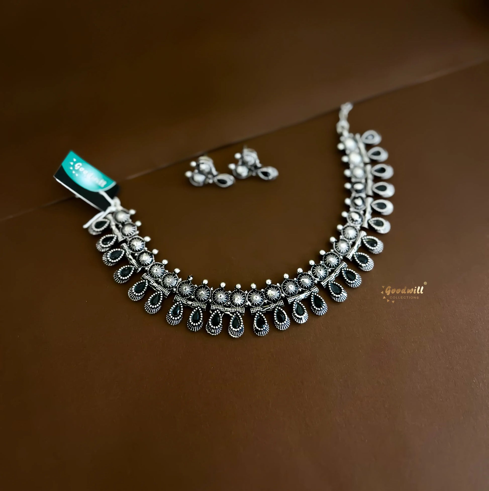 OXIDIZED SILVER GOPI NECKLACE SET 2
